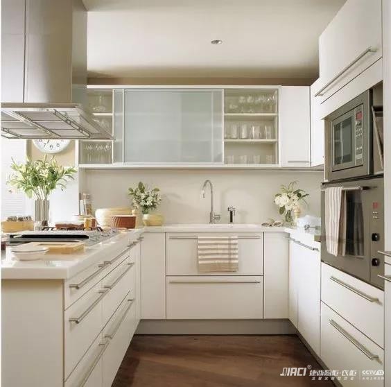 2、廚房的緊湊程度——如果廚房本身麵積就不大,還(hái)要放上很多電器(例(lì)如冰箱(xiāng)、微波爐、電磁爐、電飯煲、榨汁機等等都(dōu)要放在廚房裏),那(nà)麽櫥櫃的顏色最好是純色且不宜(yí)太鮮豔(比如明黃或者大紅),因(yīn)為太花或者太豔的櫥櫃會顯得你的廚房(fáng)更加擁擠(jǐ)混(hún)亂。